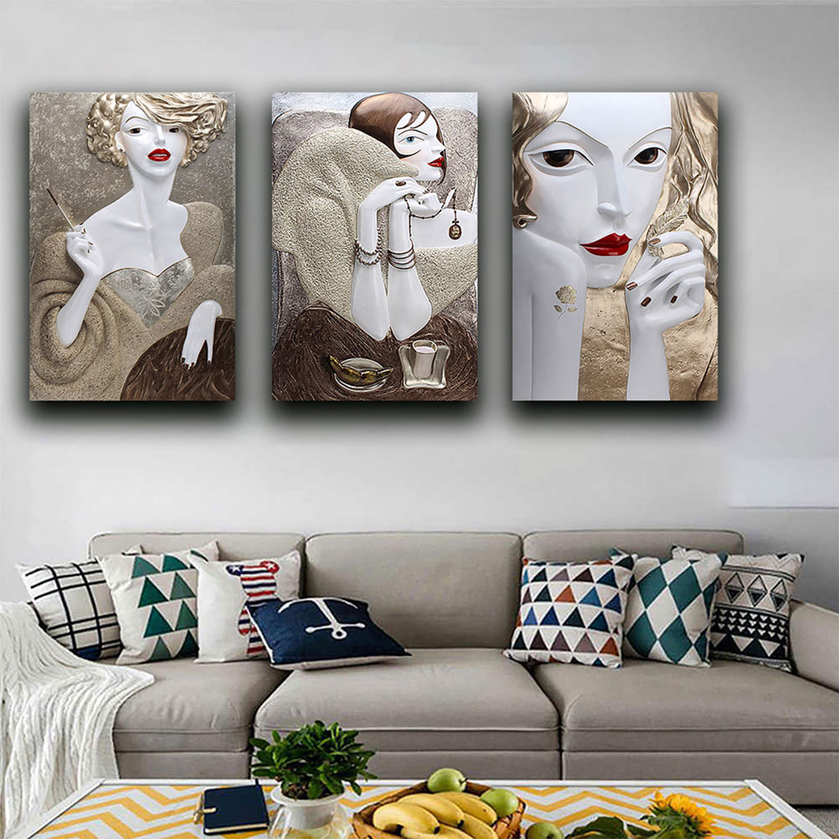 3D GÖRÜNÜMLÜ KADINLAR KANVAS TABLO SETİ SİMSİZ